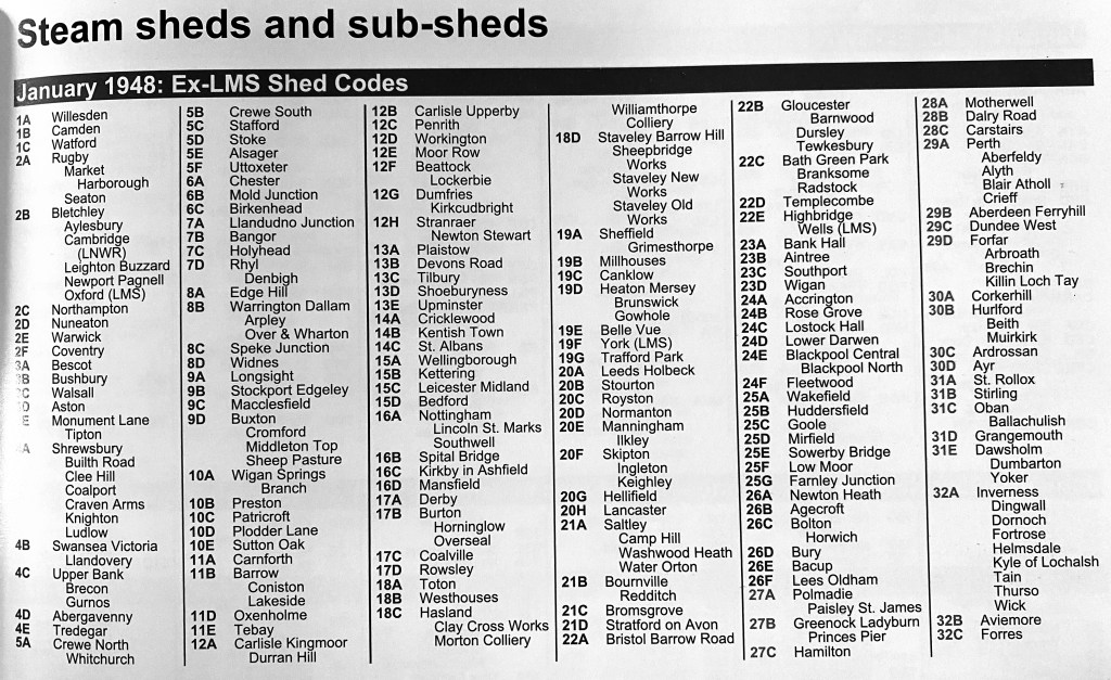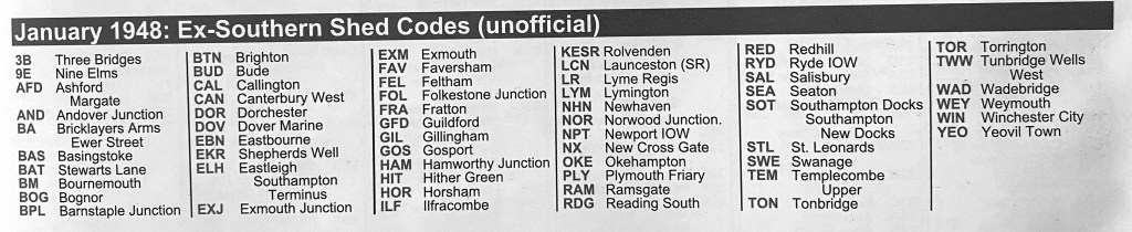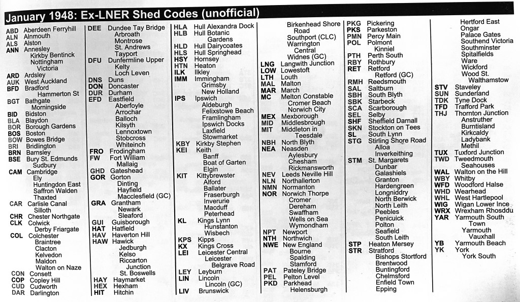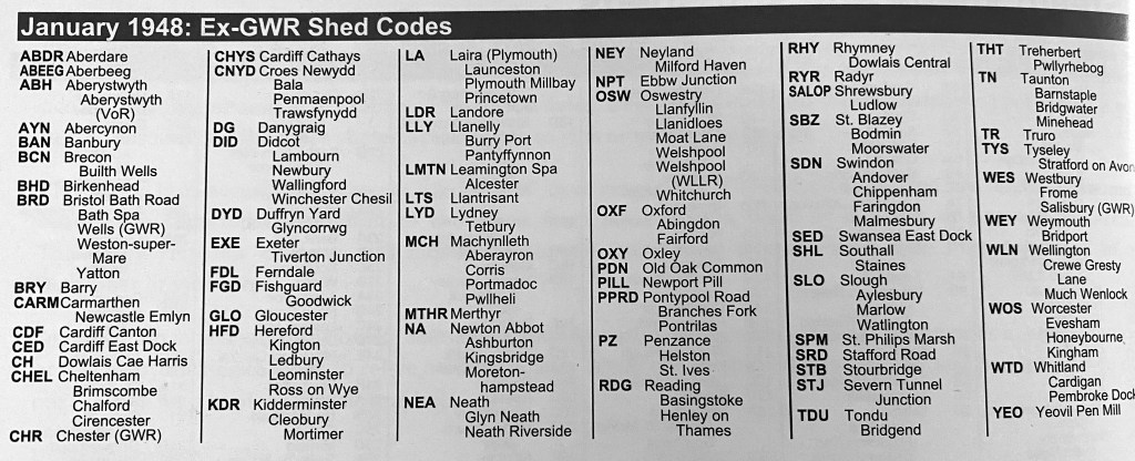 Shed codes (taken from Longworth); used prior to 1949.