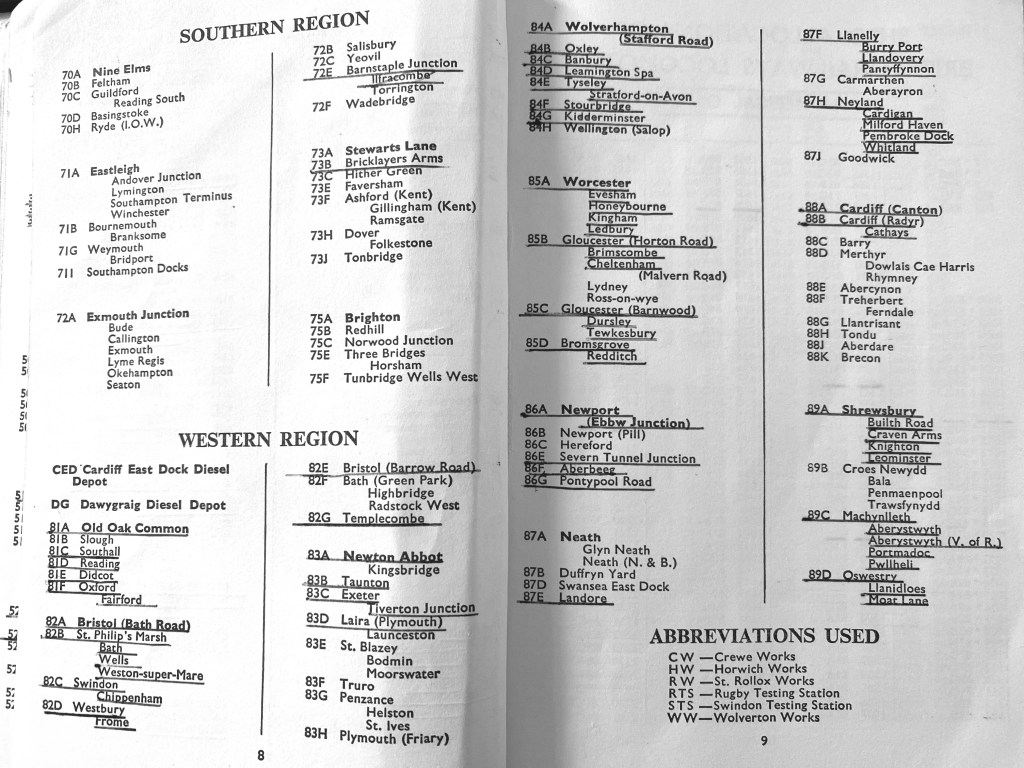 At the very bottom of this page are images from the 1960/61 locoshed book, showing shed allocation codes for all sites open at that time.
