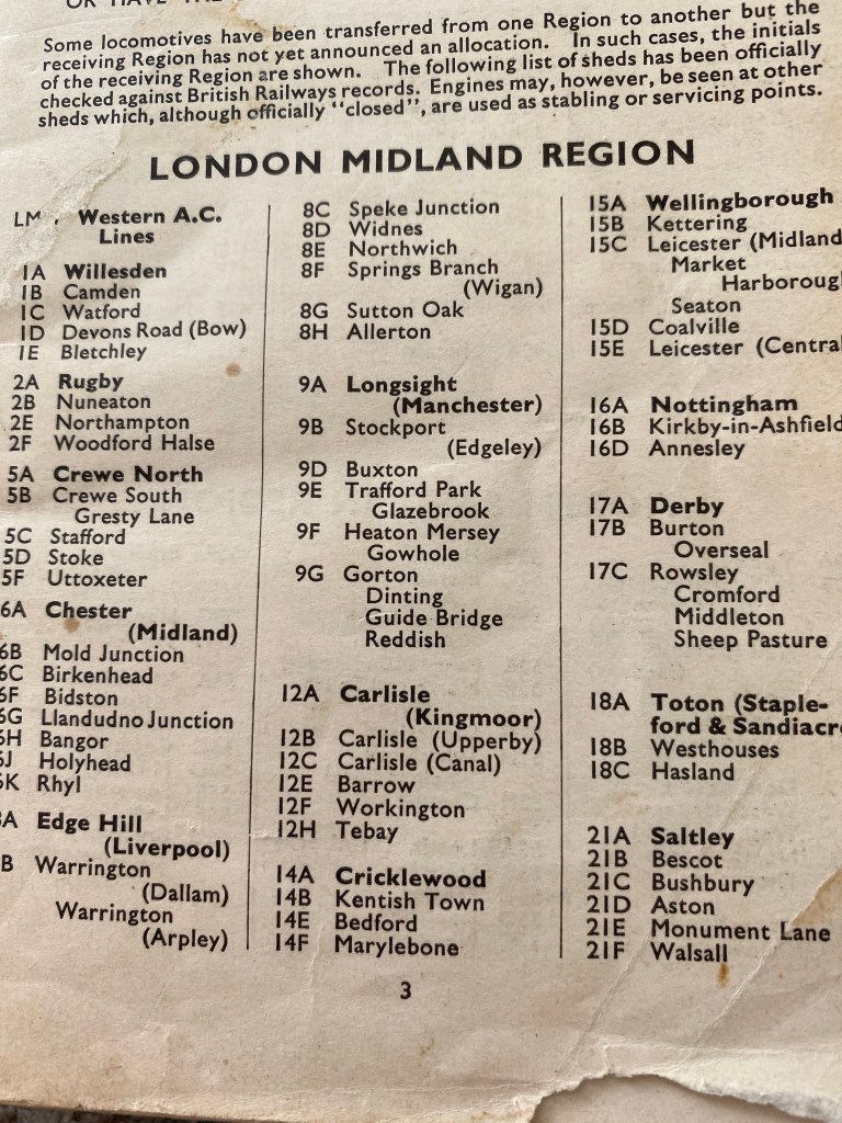 I also have anonymous notes from North Lincolnshire. On various days the N Lincs ones are combined with occasional records of the summer/bank holiday excursions to Cleethorpes. I believe the GWR (Oxford based) spotter (D Martin) notes only occasional diesels, and not always non ex-LMS locomotives. I also have notes from Nick Sanders, PE Kelly, Stephen Bradidge , another ex-GWR enthusiast, plus someone who lived in Bexhill, but commuted regularly to London..