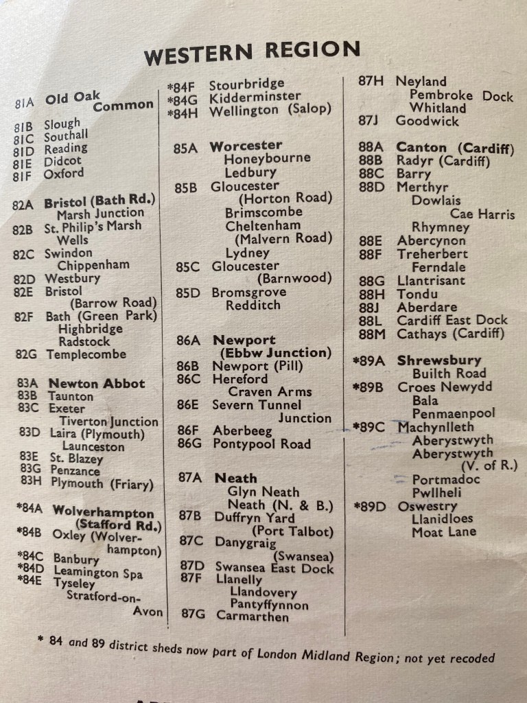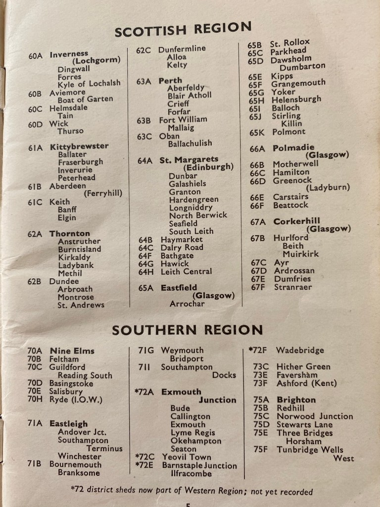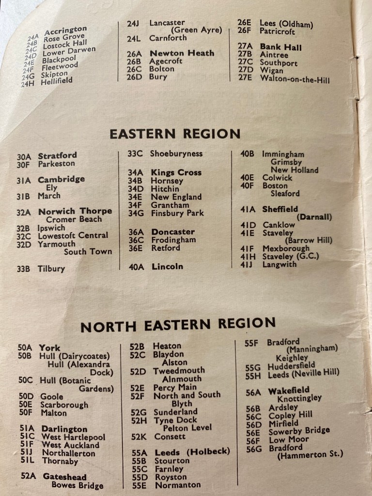 At the very bottom of this page there are images of shed code pages copied from an old 62/63 locoshed book. I hope this helps.