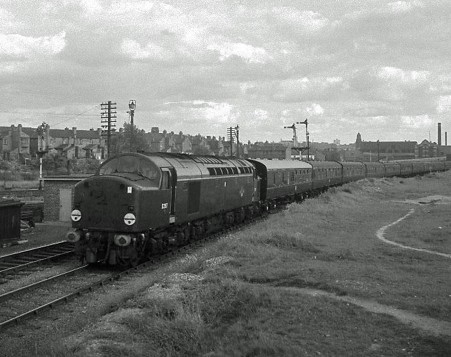 A solitary shot of one of the regular Sunday diversions, unfortunately, though, one of the much detested EE Type 4s, later known as Class 40. This is heading through Ryecroft towards Cannock, eventually rejoining the WCML at Rugeley Trent Valley.