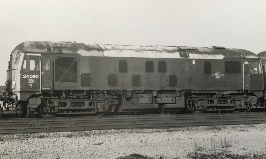 Stored in Kingmoor yard during 1976, 24090 looks rather resigned to fate. Still in green livery and rather weathered by the elements, the loco was eventually towed to Doncaster and cut up at the works late in 1977.