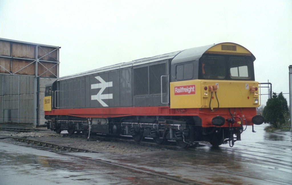 By contrast; on a grey and wet December day in 1982, brand new 58001 is seen within Doncaster works while undergoing tests.