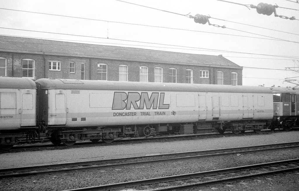 With the adjacent works, the numbers of test trains through the decades were many and various. This is a 1990s version. ADB977783 and 977791 are part of a trial train behind 86425 in 1992.