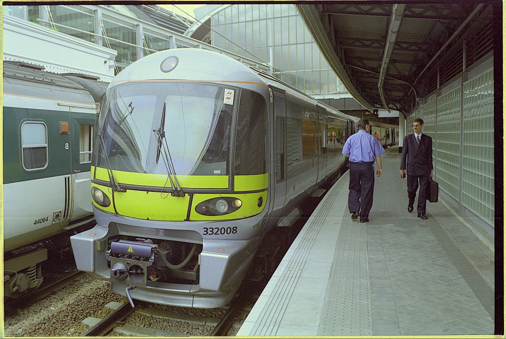 By the end of the 20th century, electrification had been completed as far as Heathrow Airport. 332008 is one of the units constructed for the Heathrow Express service, and is seen at Paddington in 1999.