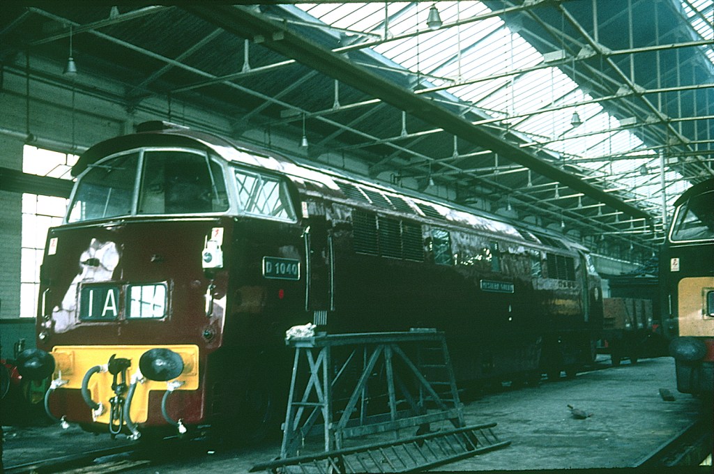 Inside the running shed at Old Oak Common in late September 1962 D1040 ‘Western Queen’ is brand new, having been delivered from Crewe Works on the 20th of that month. The initial idea was to have the buffer beam yellow panel, but this was quickly superseded by a warning panel which covered the headcode box area, as can be seen on a classmate to the right.
