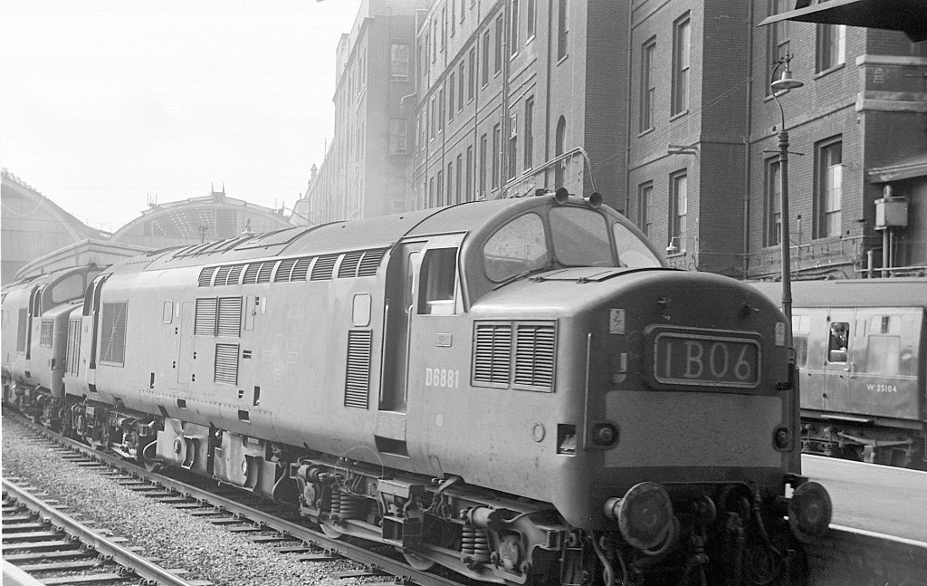 In the mid-1960s, BR attempted to speed up London to Bristol services using pairs of English Electric Type 3s (later class 37) geared for 100mph running. In this shot we see D6881 and D6882 ready to work 1B06 on July 26th 1966. The experiment was not a great success due to excessive wear on components, and was abandoned in 1967.