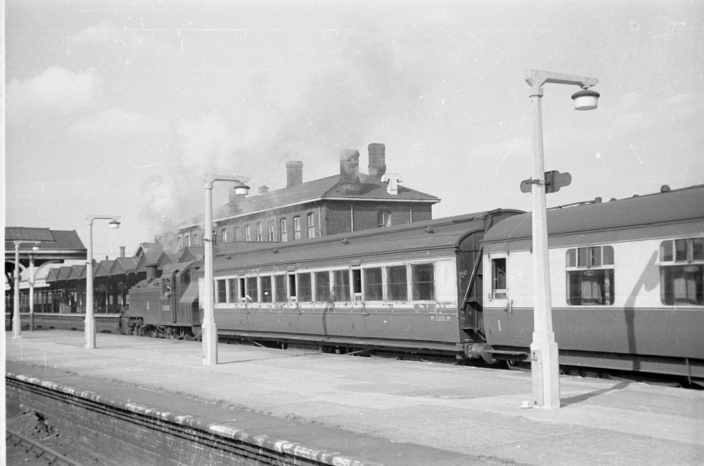 Stockport station in the summer of 1955. Standard 2MT 2-6-2T 84010 is only 2 years old in this photo, although M3203M has seen better days. 84010 was an Oldham Lees loco at this time, and so possibly the train will be heading in that direction?