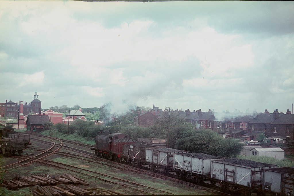 To the west of Swinton and Eccles (technically Salford and not Manchester) was an area of coal mines which had its own railway system for a while. In later years it became NCB Walkden and had ageing steam locomotives as motive power. Here is one of those with loaded 16t coal wagons in 1966.