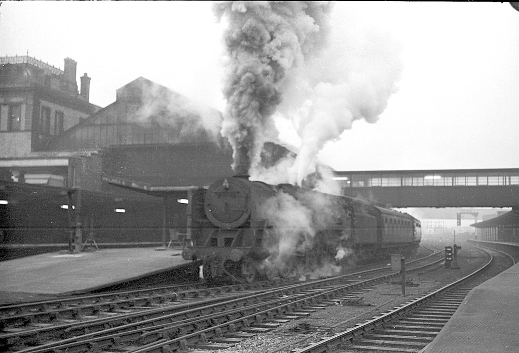 Britannia pacific 70044 ‘Earl Haig’ makes a rather lively departure from Preston during 1966. This locomotive was only months away from withdrawal at the time.