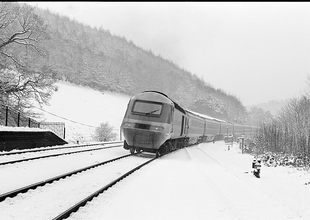 An unidentified HST arrives at Bodmin Road station on 20th January 1985. Cornwall experienced rare (for the county) heavy snowfall during this time.