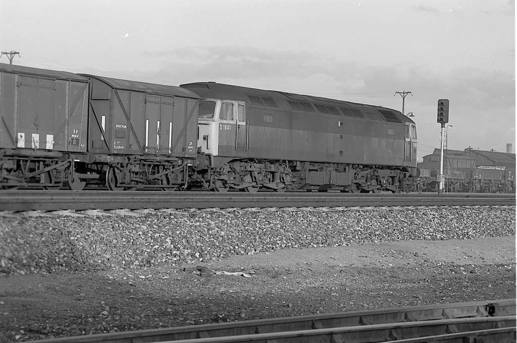 The low November sun catches D1641 as it passes Reading with a van train in 1967.