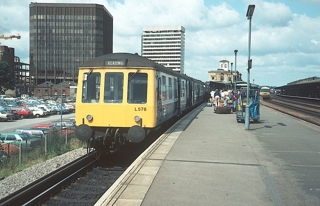 L578 was W51064 W59423 W51092, which has just arrived at Reading from Gatwick Airport on June 27th 1981, and the sunburnt holidaymakers move off to find their connecting trains home. Part of the old Southern Railway station buildings can be seen to the left of the cab, but the main SR station site has been turned into a car park.