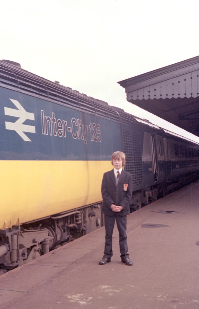 If you are going to take a photo of your son in his new school uniform, you could do much worse than have him pose beside one of the very few early build HST power cars with black infill to the lettering. I believe the first 8 units were delivered this way, but it may have included W43009 and 43010, although photographic evidence is very hard to find. This is 43004 at Reading in September 1976.