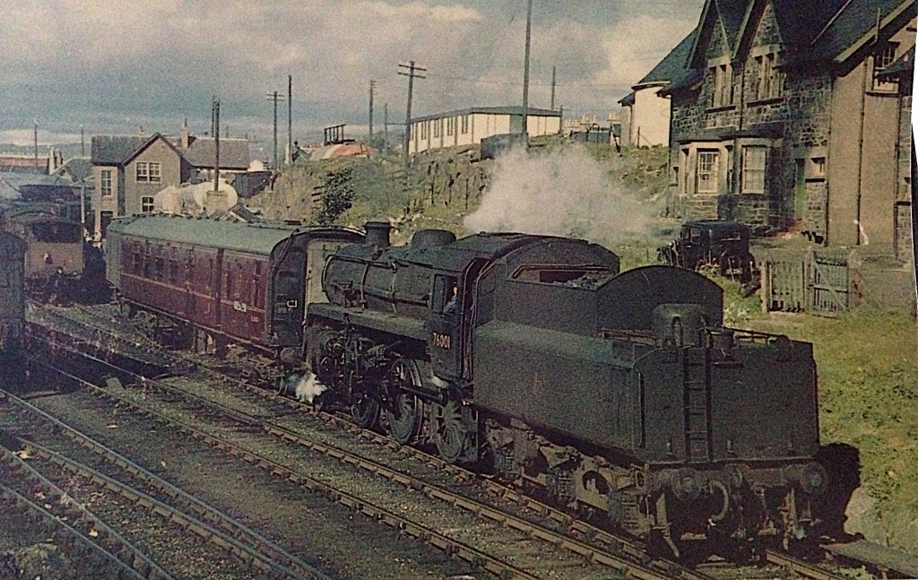 Standard class 4 2-6-0 76001 does a bit of shunting at Mallaig on August 13th 1960.