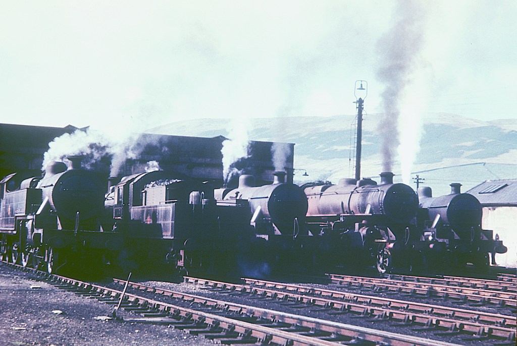 A much busier scene at Tebay in August 1960, with Fowler 2-6-4T locos with other classes all seemingly with good heads of steam.