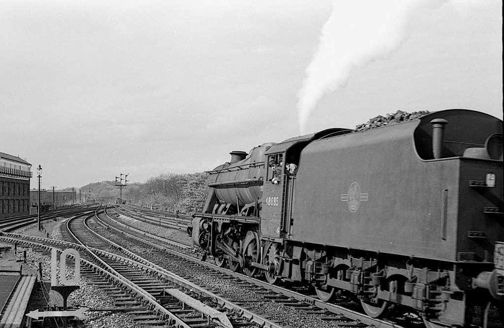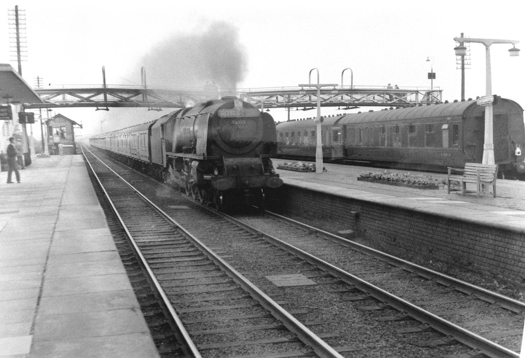 Back in early 1964, expresses were still in the very capable hands of Stanier pacifics, although their time was nearly up – only to be replaced by less than capable EE Type 4s (at least when climbing Shap and Beattock, but much easier for the fireman/secondman). Here 46250 ‘City of Lichfield’ leaves Wigan with a passenger train.