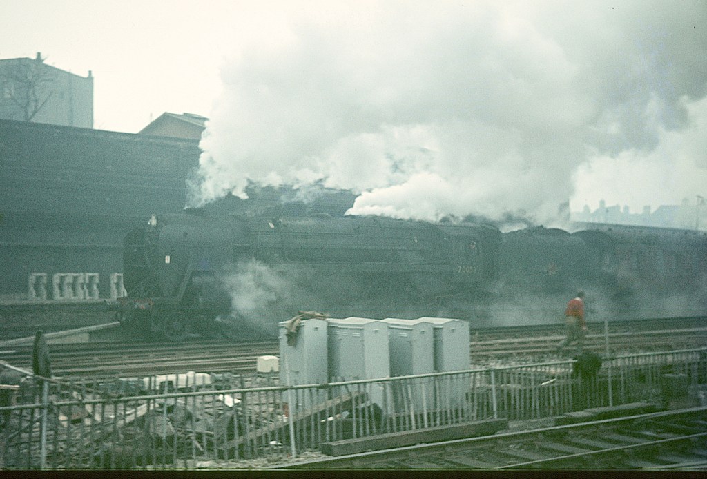 With construction work still ongoing, 70053 ‘Firth Of Tay’ leaves Euston in 1965.