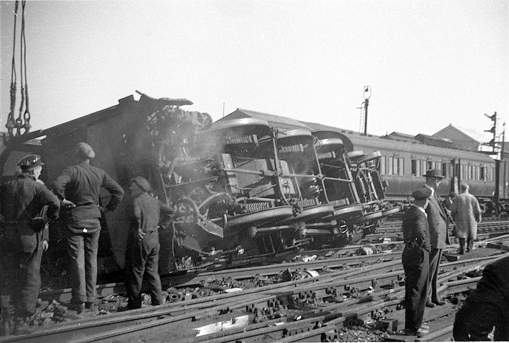 On August 28th 1961 there was an accident on the railway near Warrington Dallam shed in which one person died and six were injured. This is the scene some time after the crash. However, the mystery is that there seems not to have been a formal accident inquiry. There is a dedicated page on the Railway Archive site, but little or no further information – and Wikipedia doesn’t mention it at all. Further internet rummaging leads me to believe the locomotive involved was Black 5, 45401.
