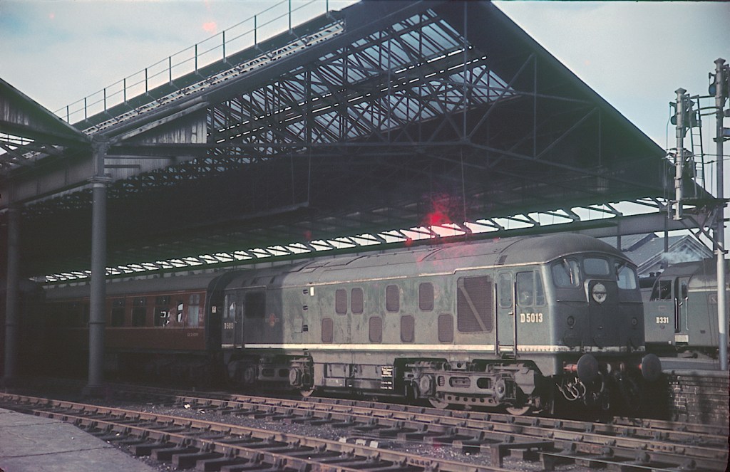 D5013 is pictured at the front of a stopping service, most likely to Euston; while D331 is seen behind. The EE type 4s were the staple express motive power on this route, in the years between the withdrawal of the Stanier pacifics and the arrival of the electrics.