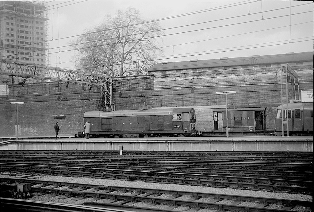 With electrification completed, D8040 acts as pilot loco; while E3165 waits to depart on March 29th 1967. (other locos seen at Euston on that day can be found by clicking the box below, then scrolling down to the date.)