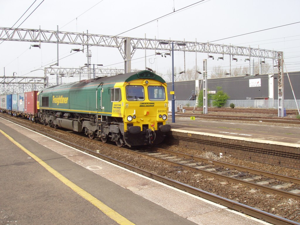 On the same day as the photo above it April 15th 2003, 66561 passes Nuneaton with a southbound freightliner service.